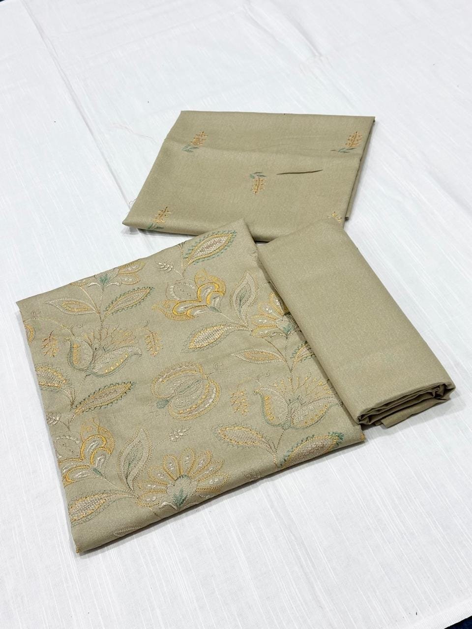 • Trouser: Plain dyed Karandi fabric (2.5 meters) in matching tone for a graceful and cohesive finish